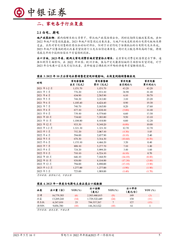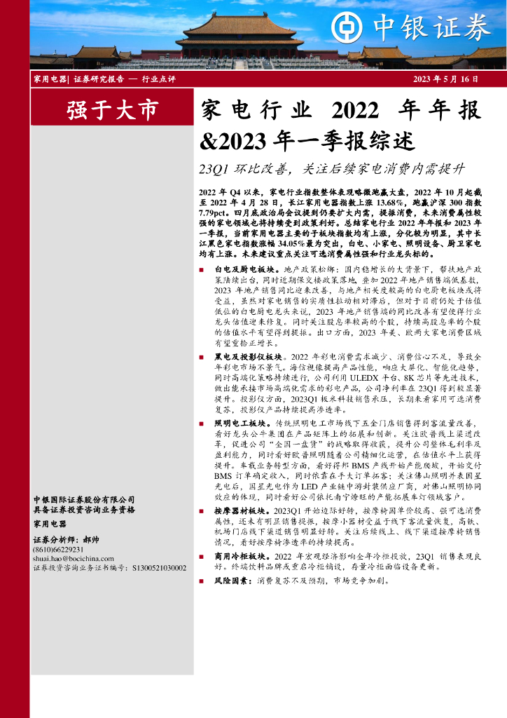 中银证券:家电行业2022年年报&2023年一季报综述:23Q1环比改善,关注后续家电消费内需提升.pdf