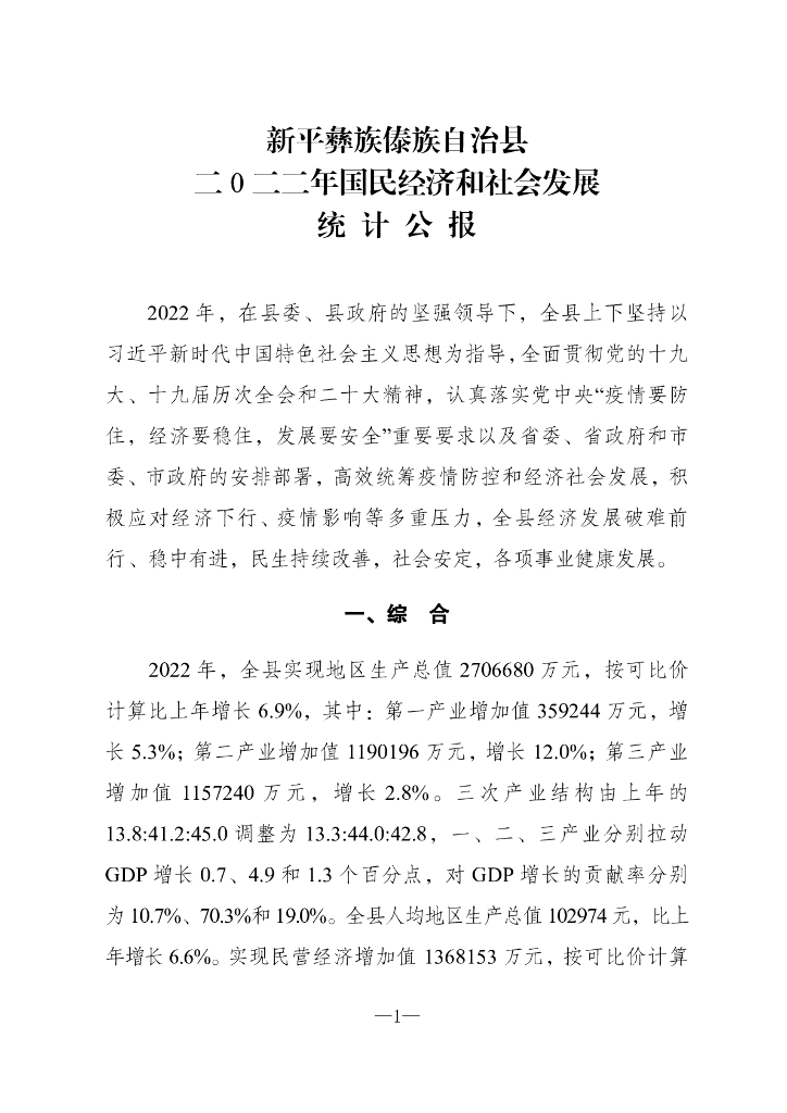 新平彝族傣族自治县2022年国民经济和社会发展统计公报.pdf