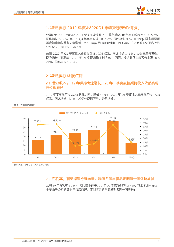 天风证券:华致酒行(300755)-19&20Q1扣非业绩保持高增长,酒类流通巨头新产品不断落地持续向好.pdf