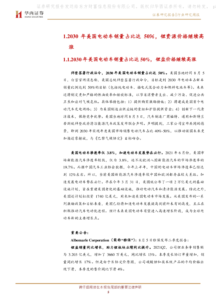华西证券:公用事业行业研究周报:2030年美国电动车销量占比达50%,锂资源价格继续高涨.pdf
