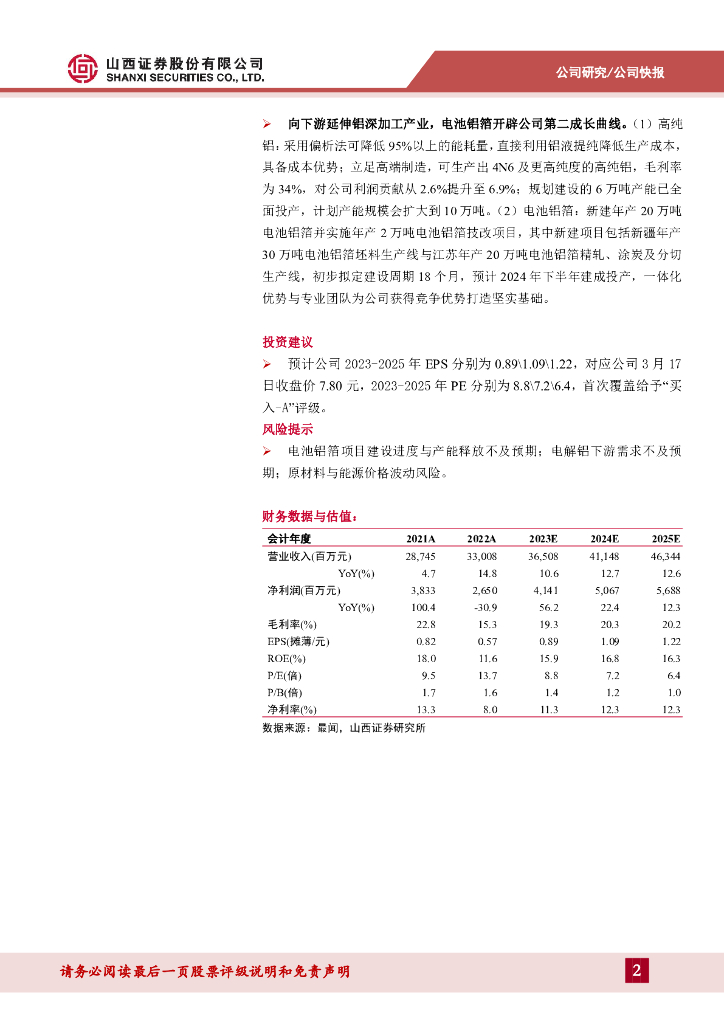 山西证券:天山铝业(002532)-电解铝一体化优势与成本控制能力强,电池铝箔开启新的成长曲线.pdf