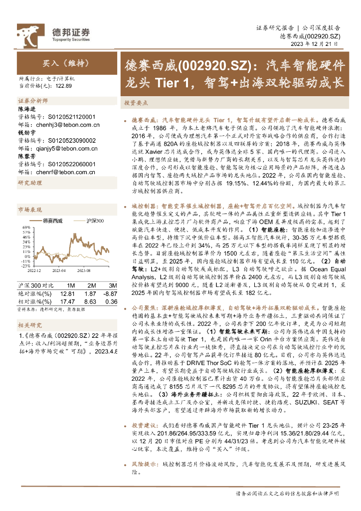 德邦证券:德赛西威(002920)-汽车智能硬件龙头Tier 1,智驾+出海双轮驱动成长.pdf