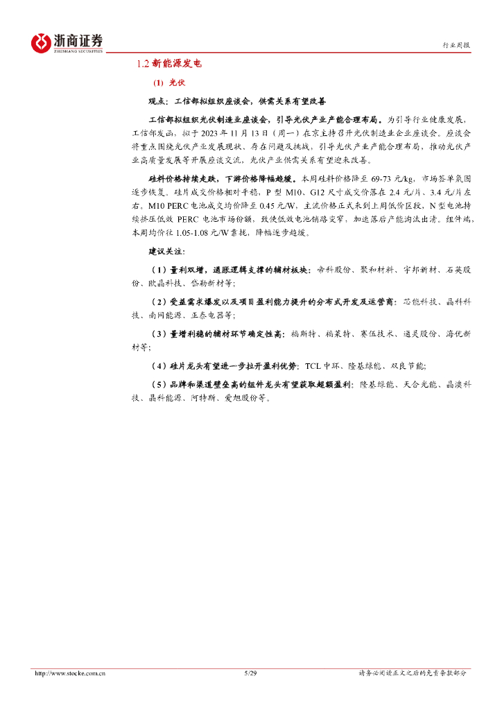 浙商证券:电力设备新能源行业周报(第44周):召开光伏企业座谈会保障长远发展,煤电容量电价机制持续推进.pdf