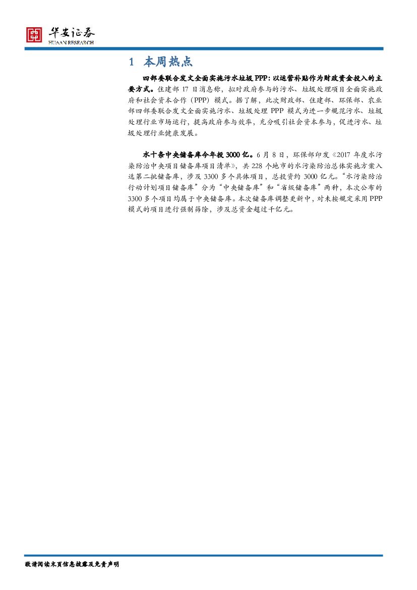 华安证券:环保行业每周报告:四部委联合发文,污水与垃圾处理全面实施PPP模式.pdf