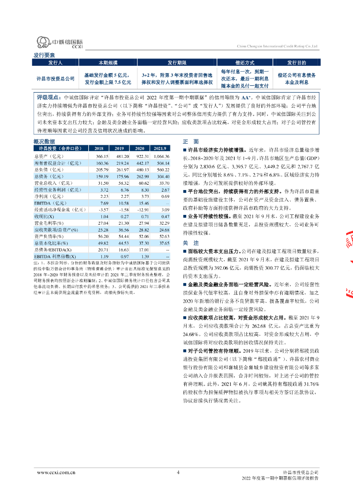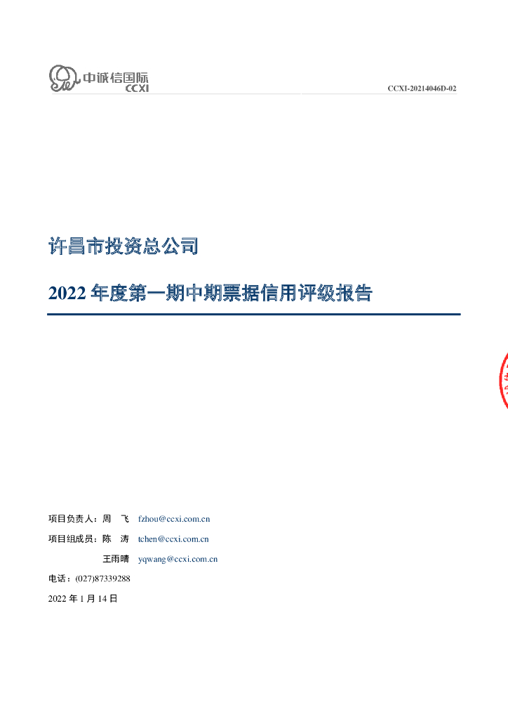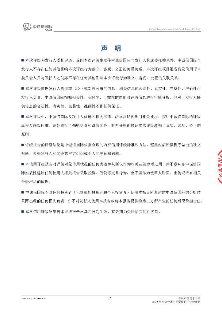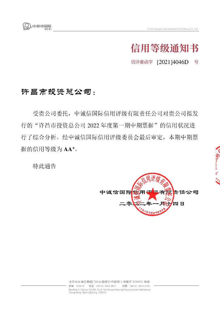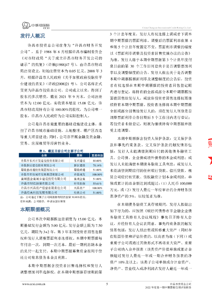 中诚信:许昌市投资总公司2022年度第一期中期票据信用评级报告及跟踪评级安排.pdf