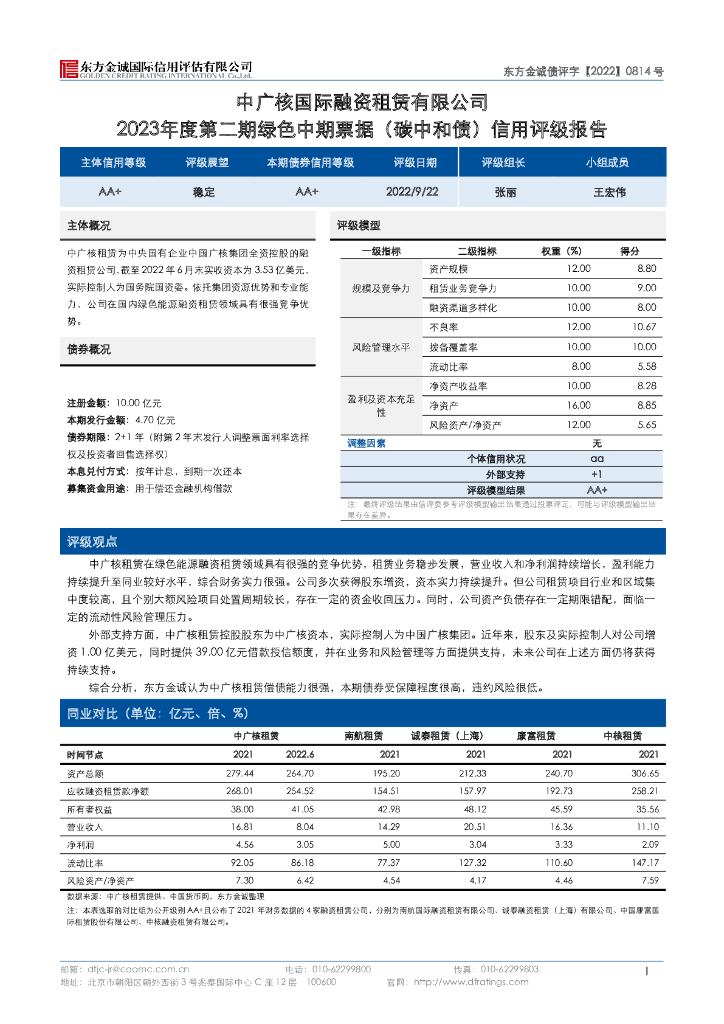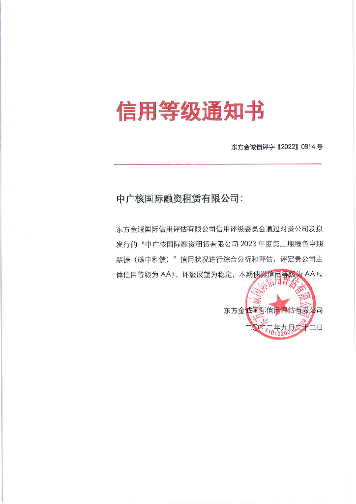 东方金诚:中广核国际融资租赁有限公司2023年度第二期绿色中期票据(碳中和债)信用评级报告及跟踪评级安排.pdf