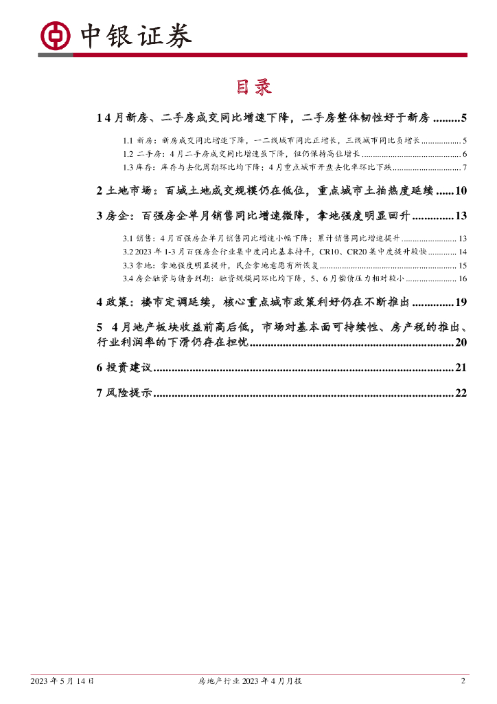 中银证券:房地产行业2023年4月月报:新房二手房成交同比增幅收窄,核心城市土拍热度延续.pdf