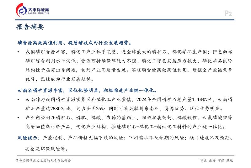 太平洋证券:云南磷化工产业:资源优势明显,积极推进高效高值利用.pdf