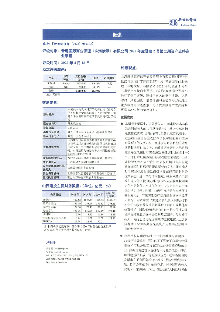 新世纪:晋建国际商业保理(珠海横琴)有限公司2022年度晋建2号第二期资产支持商业票据信用评级报告.pdf