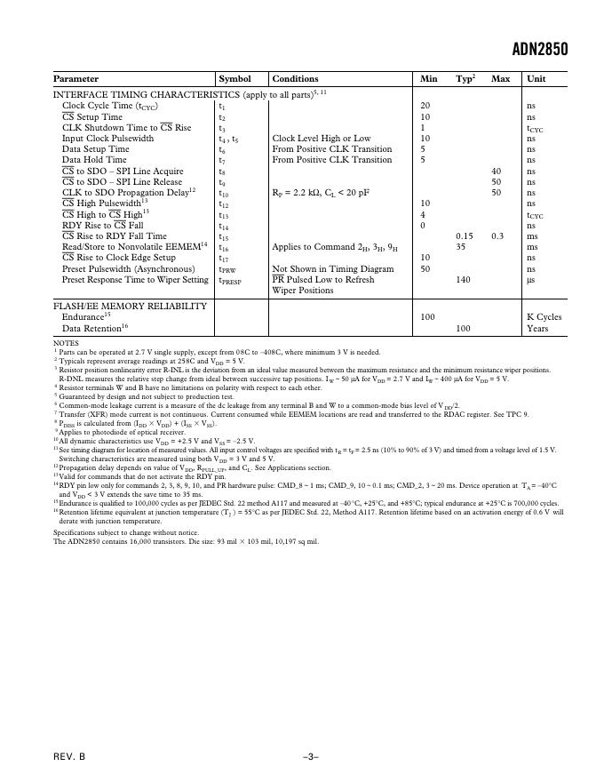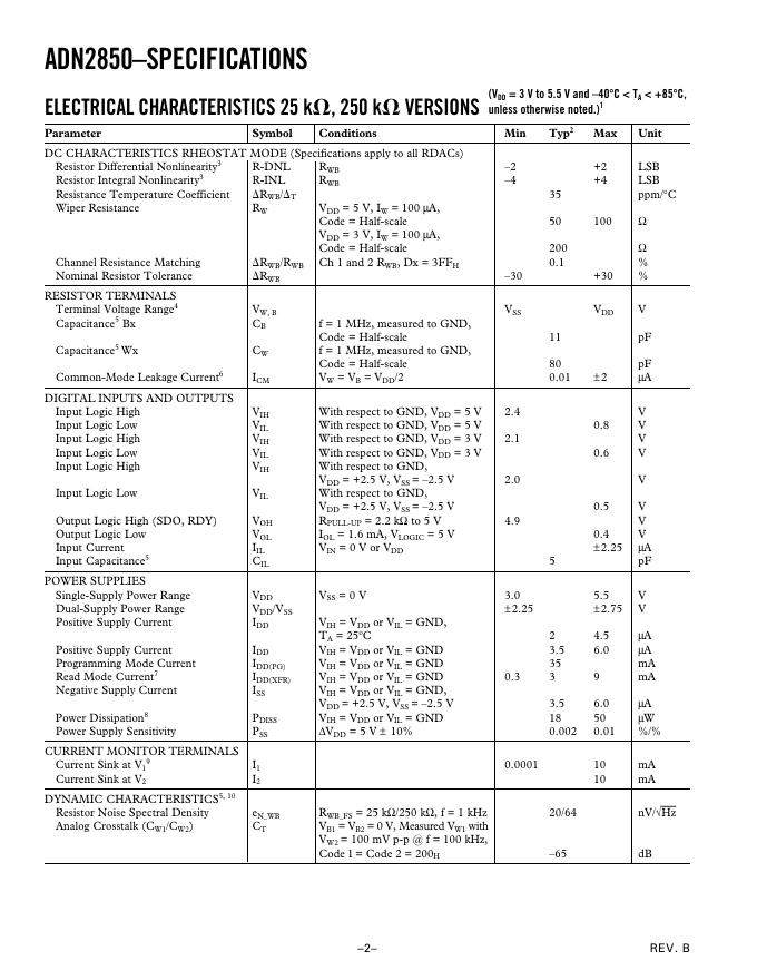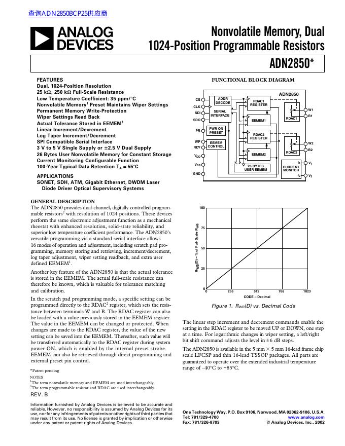 ANALOG DEVICES ADN2850* Nonvolatile Memory, Dual 1024-Position Programmable Resistors 数据手册.pdf