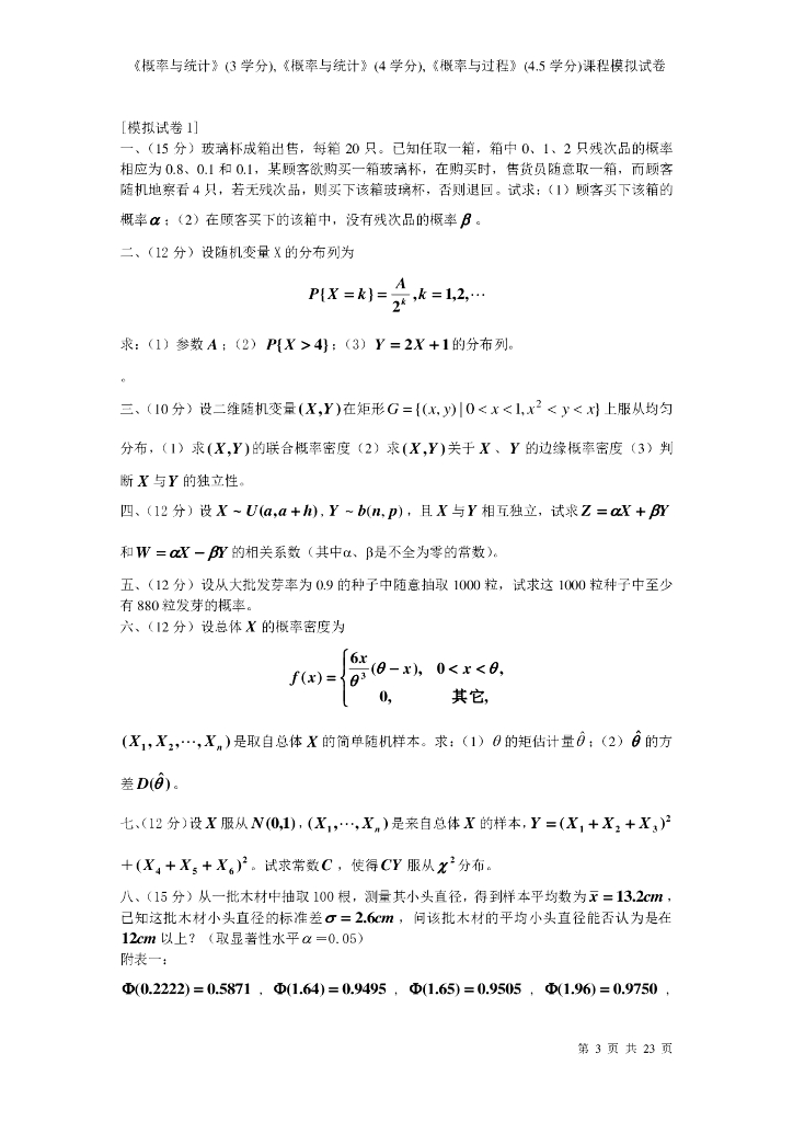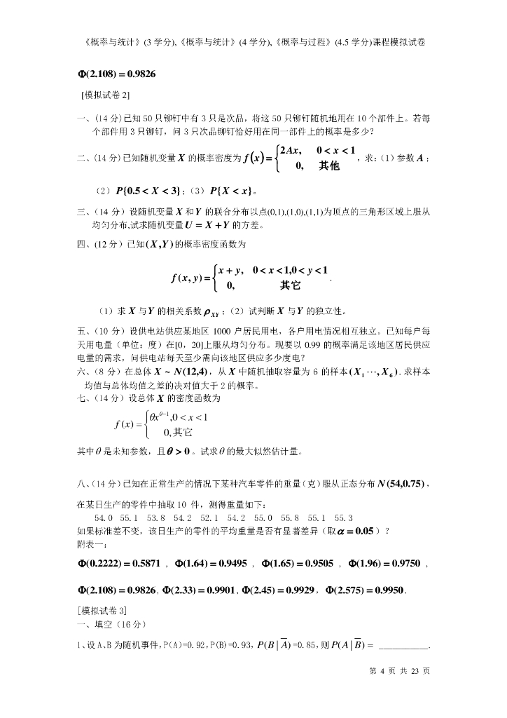 《概率与统计》概率统计模拟试卷.pdf