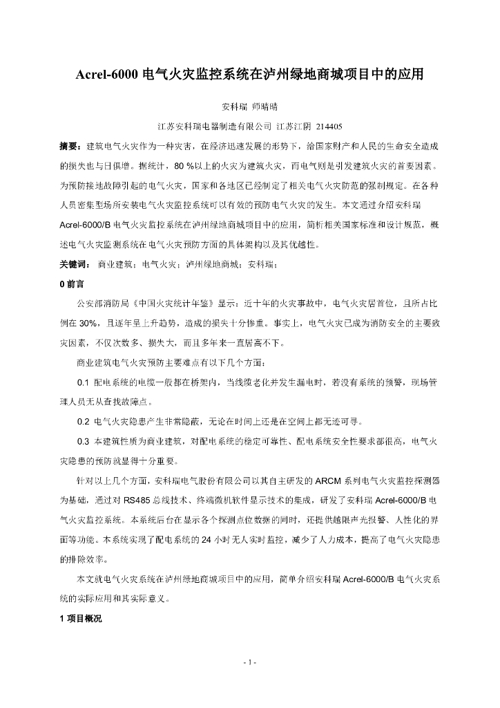 [泸州]绿地商城项目中Acrel-6000电气火灾监控系统的应用.pdf