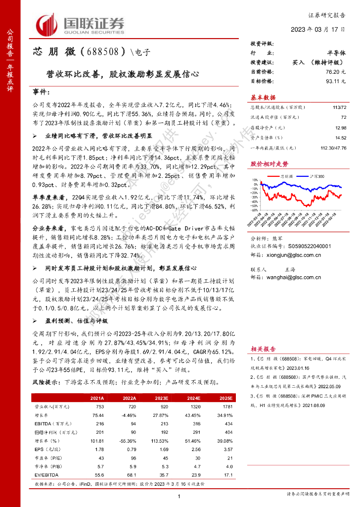 国联证券:芯朋微(688508)-营收环比改善,股权激励彰显发展信心.pdf