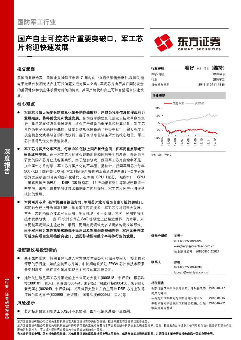 东方证券:国防军工行业深度报告:国产自主可控芯片重要突破口,军工芯片将迎快速发展.pdf