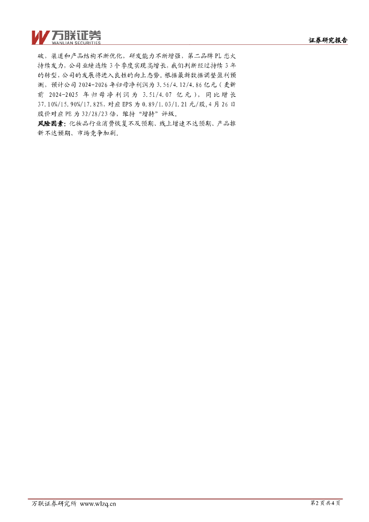 万联证券:丸美股份(603983)-2024Q1业绩点评报告:产品结构优化叠加原材料降价,公司毛利率大幅提升.pdf