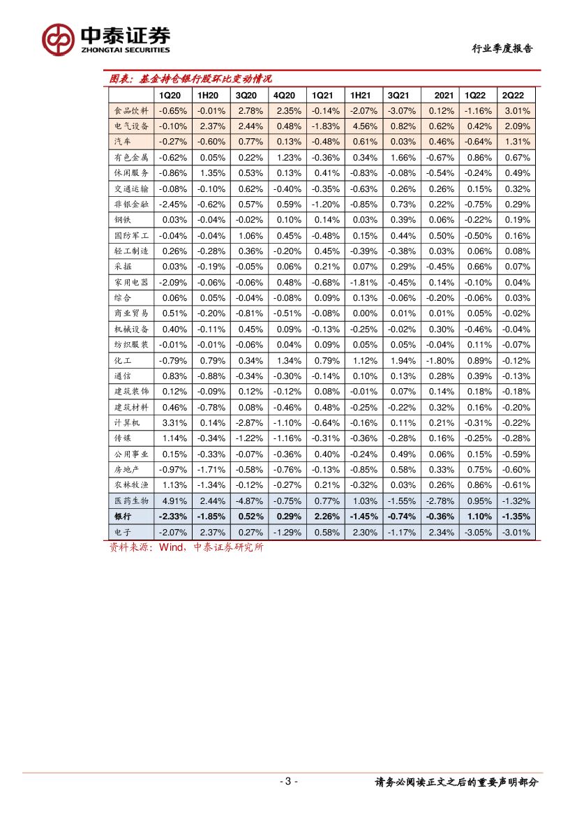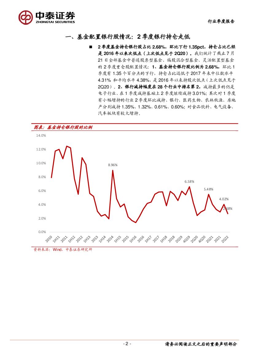 中泰证券:银行行业季度报告:详解基金2Q22银行持仓:持仓走低至2.68%、增持优质区域城商行.pdf