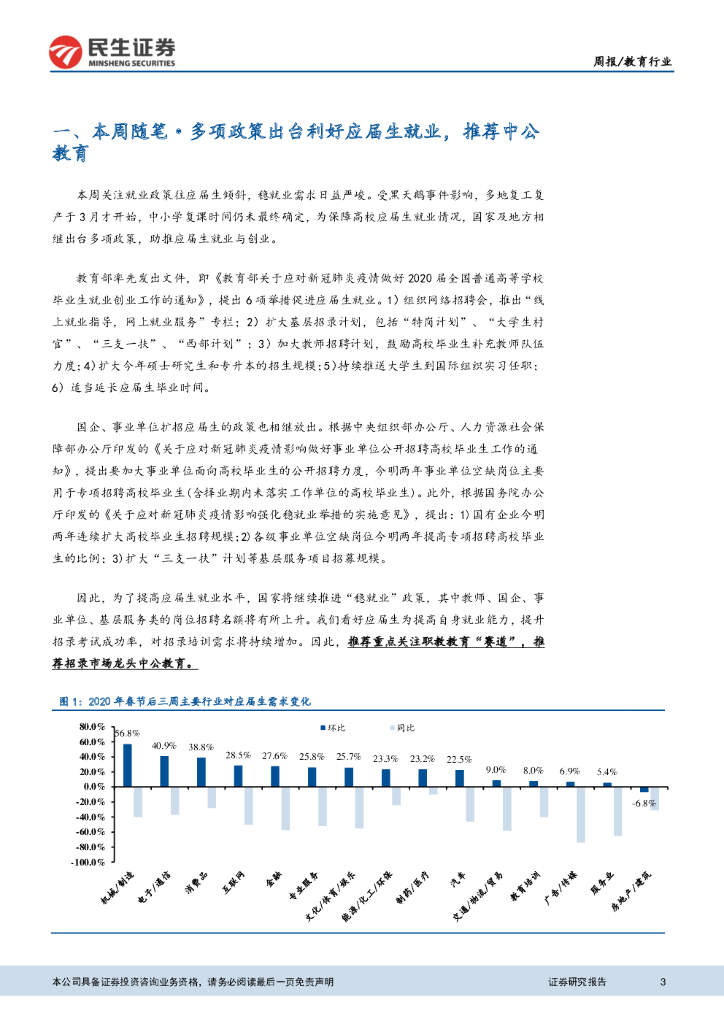 民生证券:教育行业周报:关注应届生就业政策,推荐职教板块.pdf