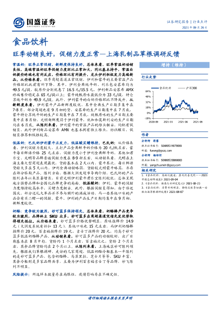 国盛证券:食品饮料行业点评:上海乳制品草根调研反馈:旺季动销良好,促销力度正常.pdf