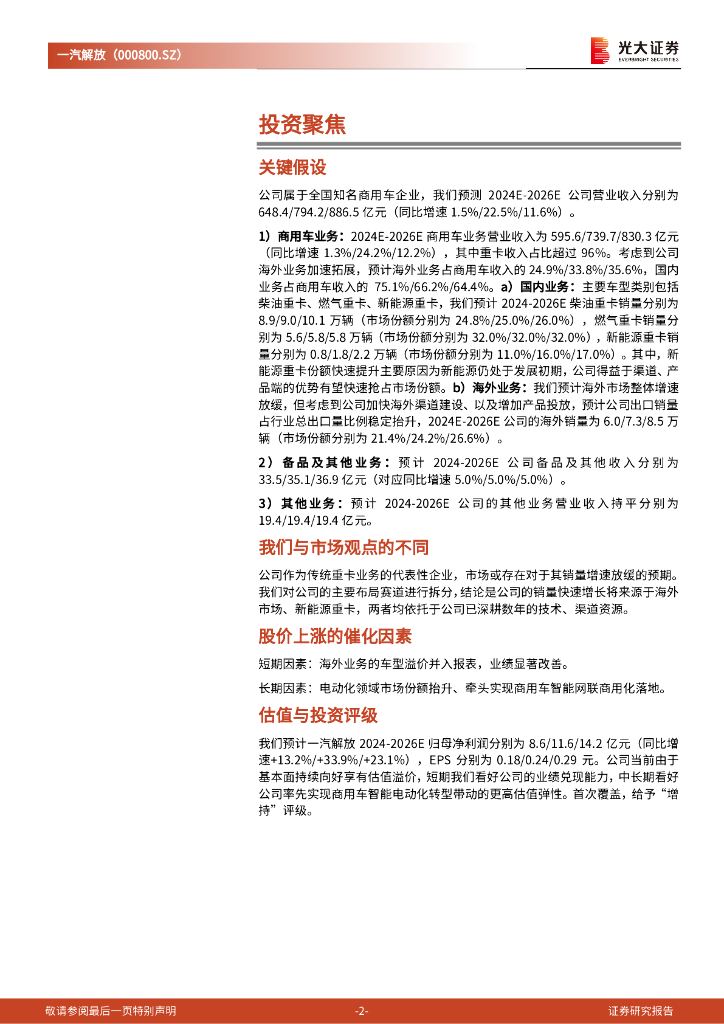 光大证券:一汽解放(000800.SZ)投资价值分析报告:新程再启有望再登峰.pdf
