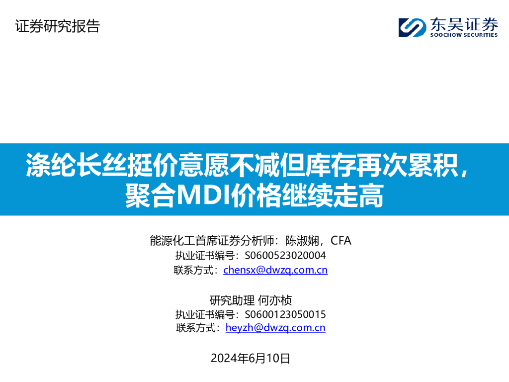 东吴证券:石油石化行业:涤纶长丝挺价意愿不减但库存再次累积,聚合MDI价格继续走高.pdf