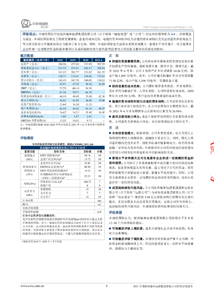 中诚信:陕西榆林能源集团有限公司2022年度第一期短期融资券主体评级报告.pdf