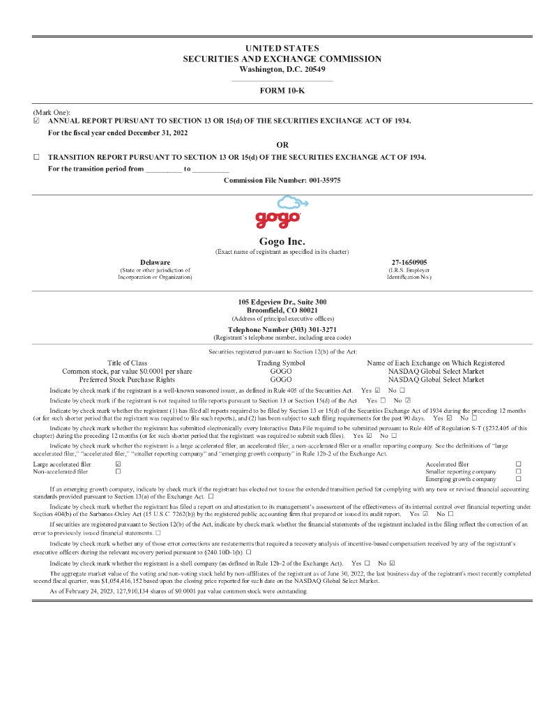 Gogo Inc(GOGO)2022财年年度报告(英文版).pdf