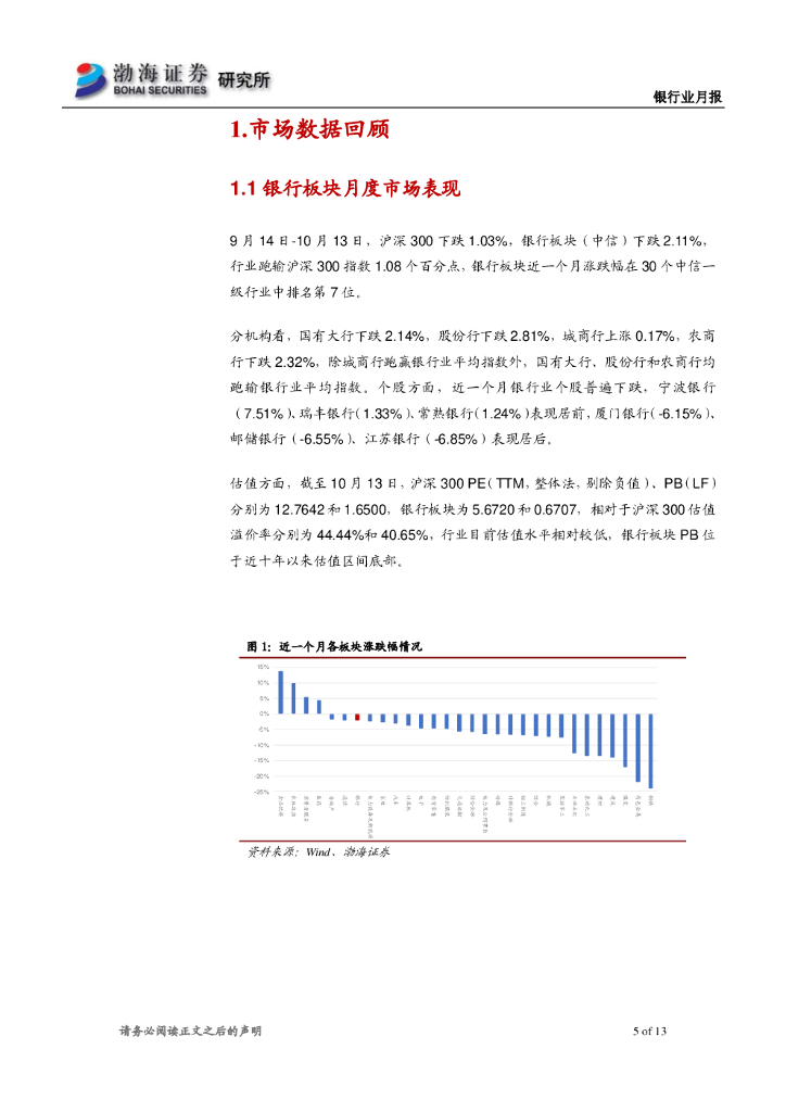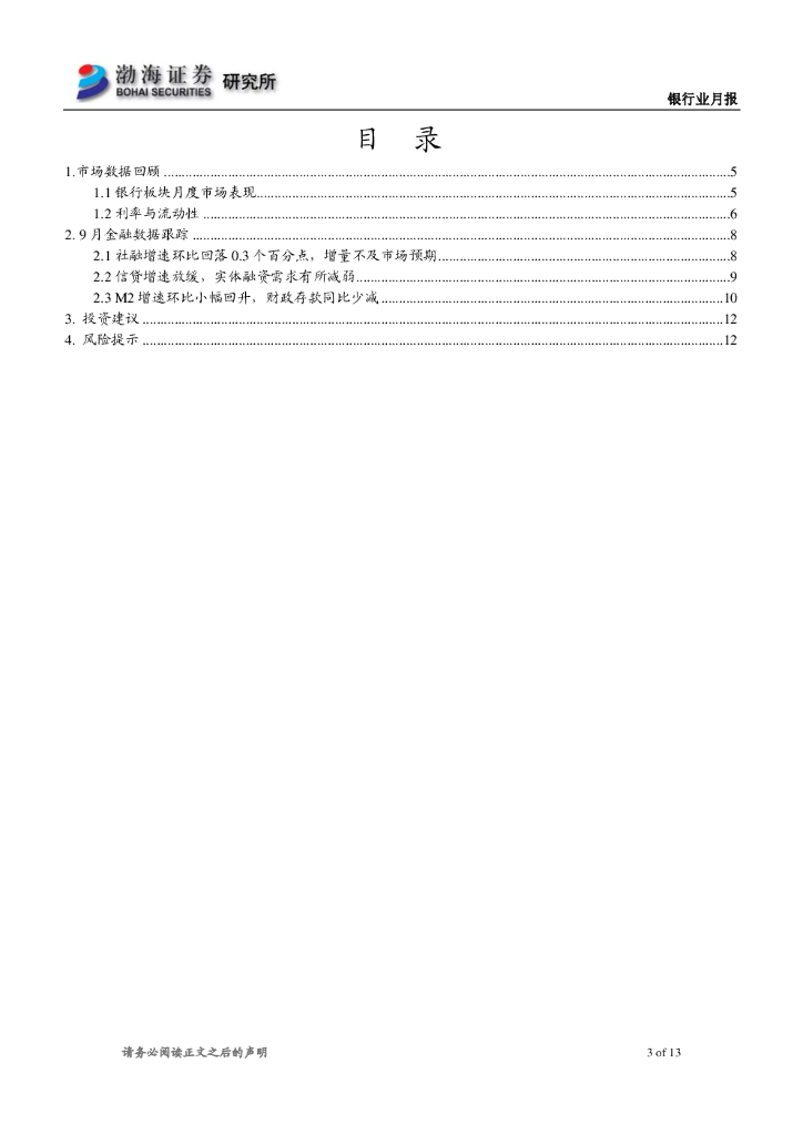 渤海证券:银行业月报:9月社融同比增速10.0%,实体融资需求偏弱.pdf
