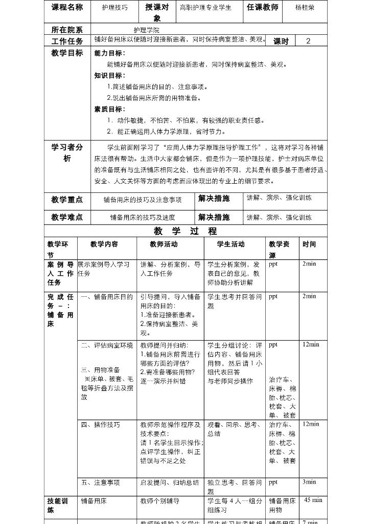 《护理技巧》电子教案-子任务一 铺备用床.pdf