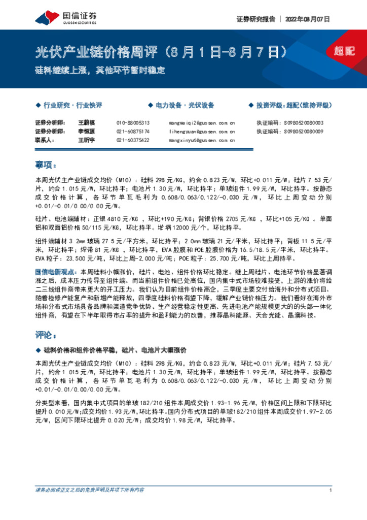 国信证券:光伏产业链价格周评:硅料继续上涨,其他环节暂时稳定.pdf