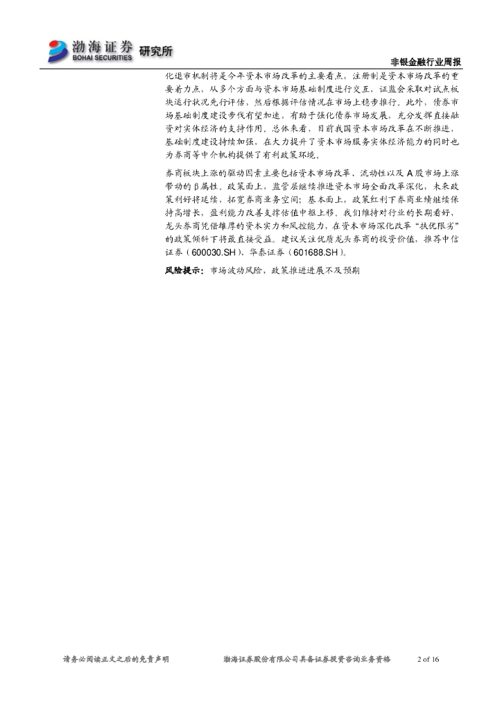渤海证券:非银金融行业周报:资本市场改革稳步推进,关注券商长期配置价值.pdf