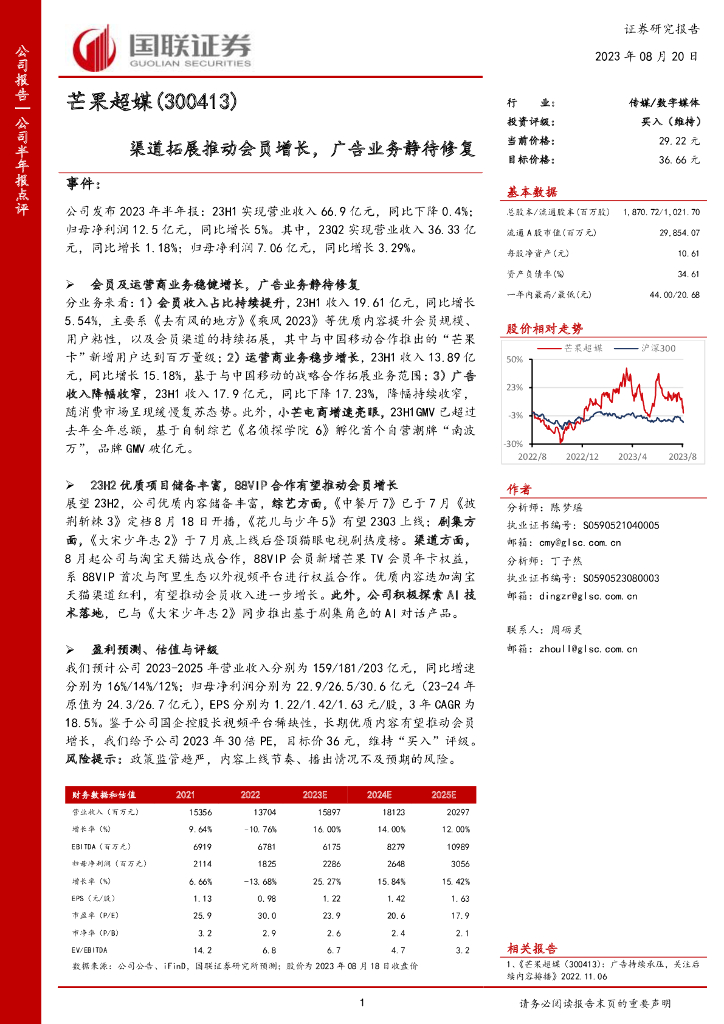国联证券:芒果超媒(300413)-渠道拓展推动会员增长,广告业务静待修复.pdf