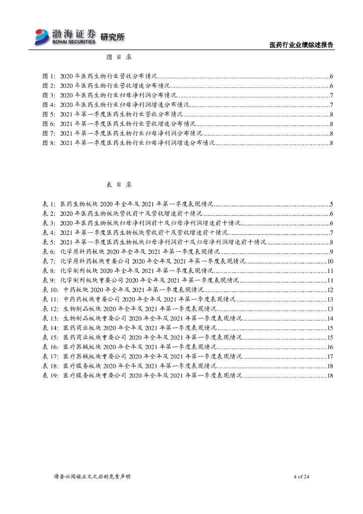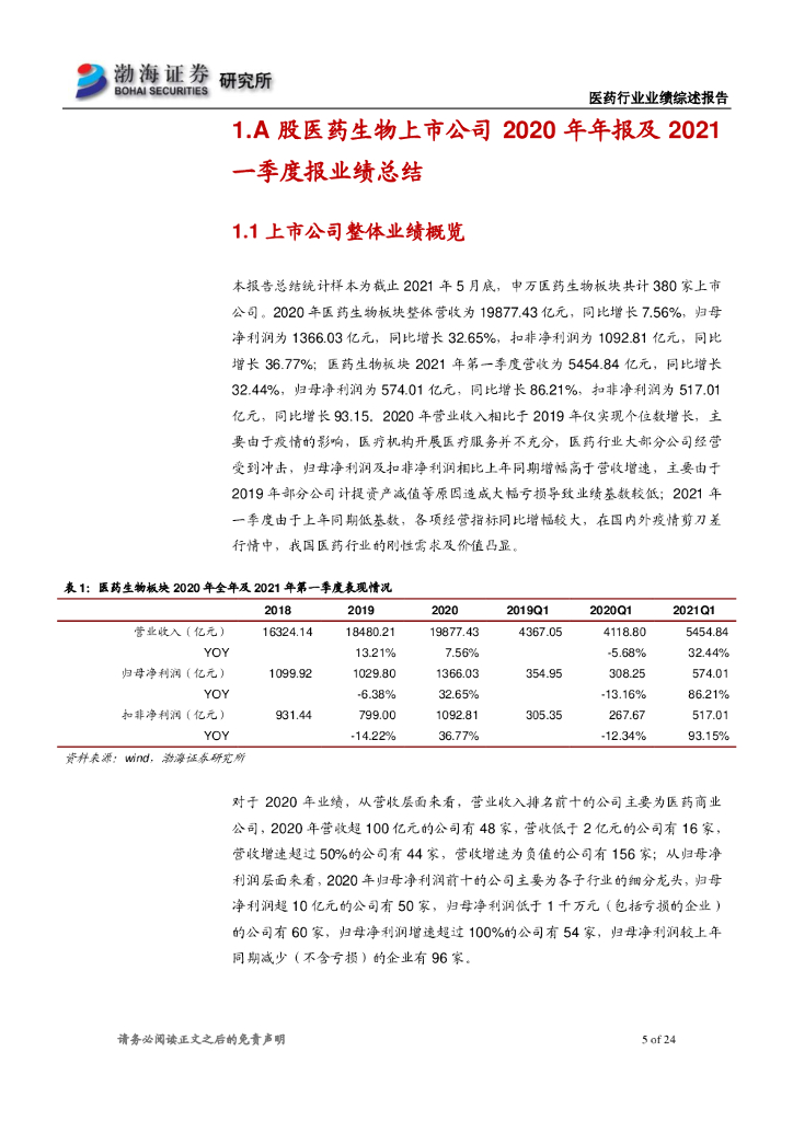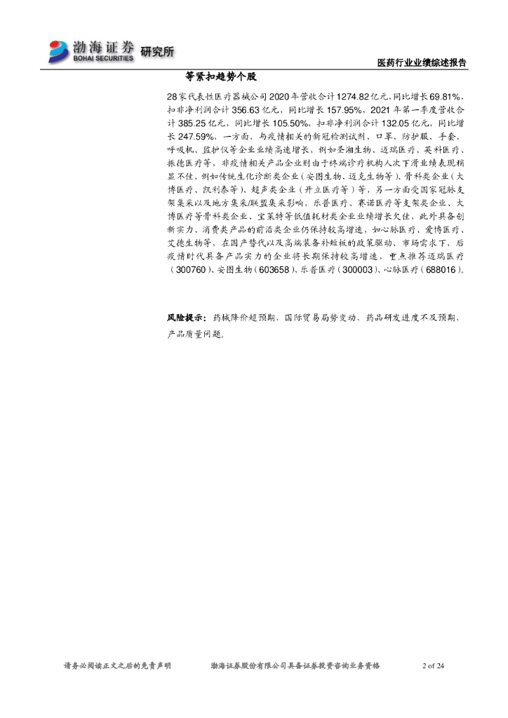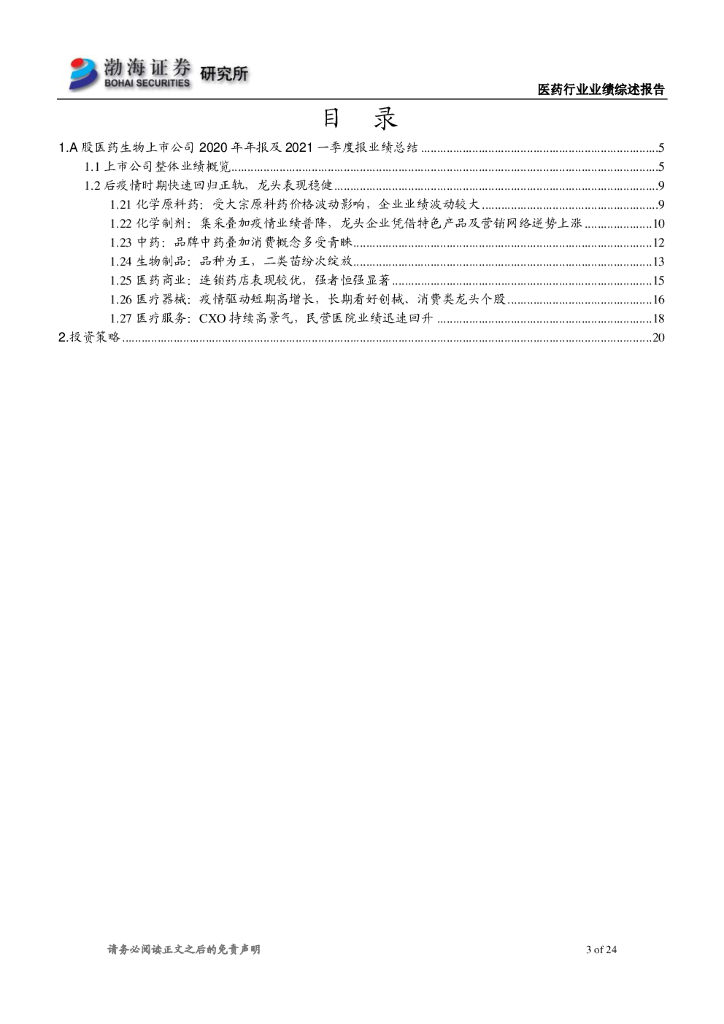 渤海证券:医药行业2020年年报及2021年一季报业绩综述:疫情推升短期分化,长期紧扣创新、消费、特色类细分赛道.pdf