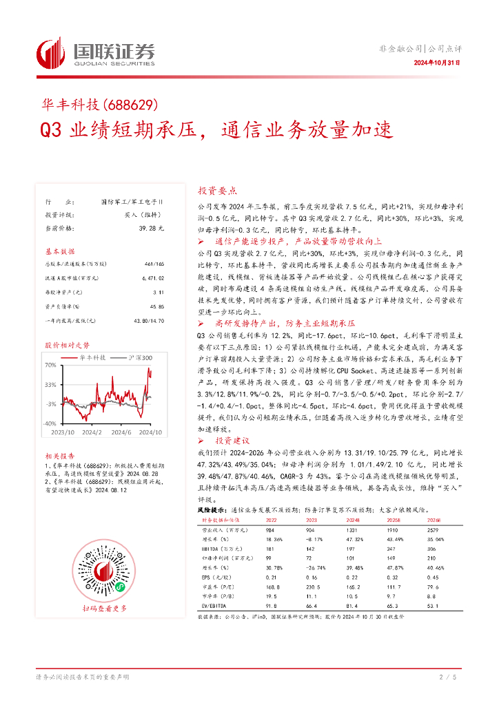 国联证券:华丰科技(688629)-Q3业绩短期承压,通信业务放量加速.pdf