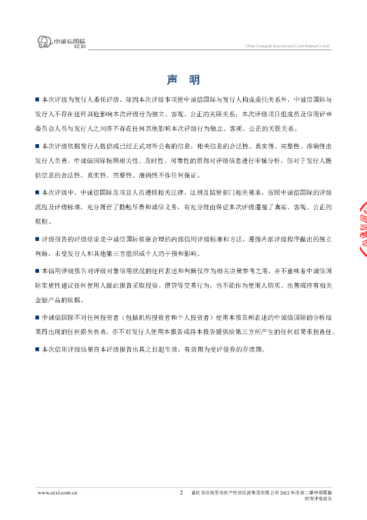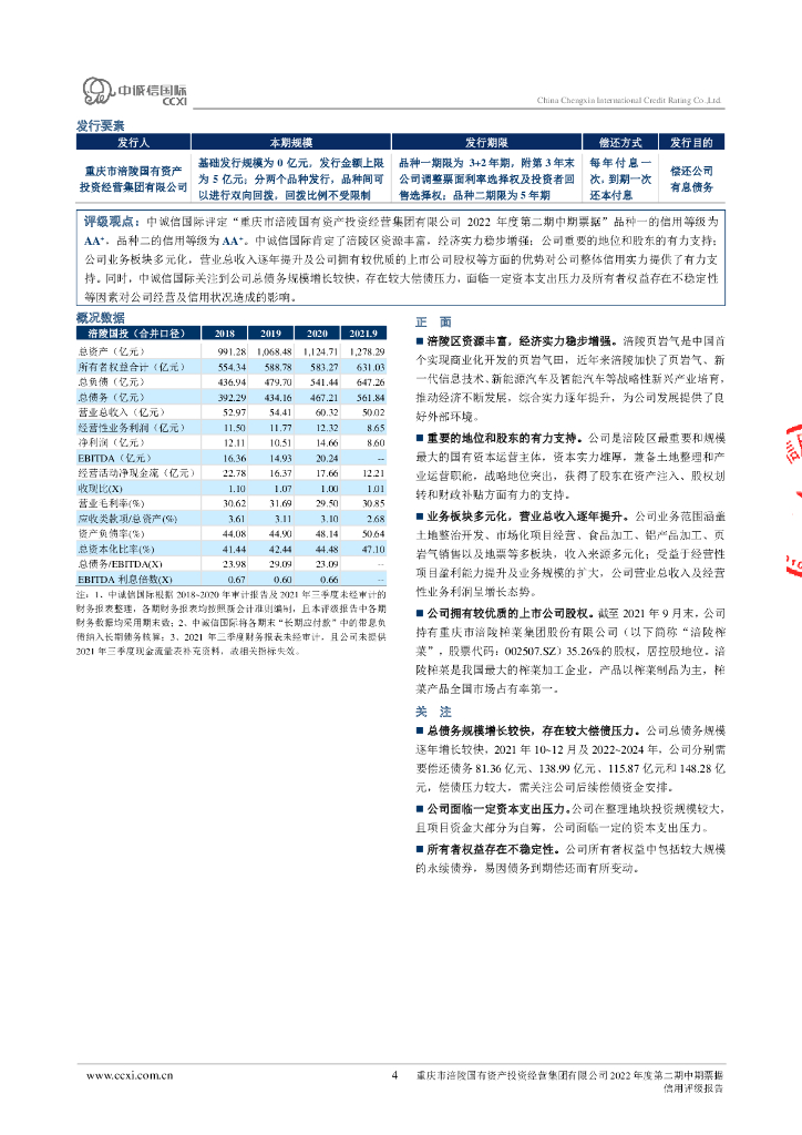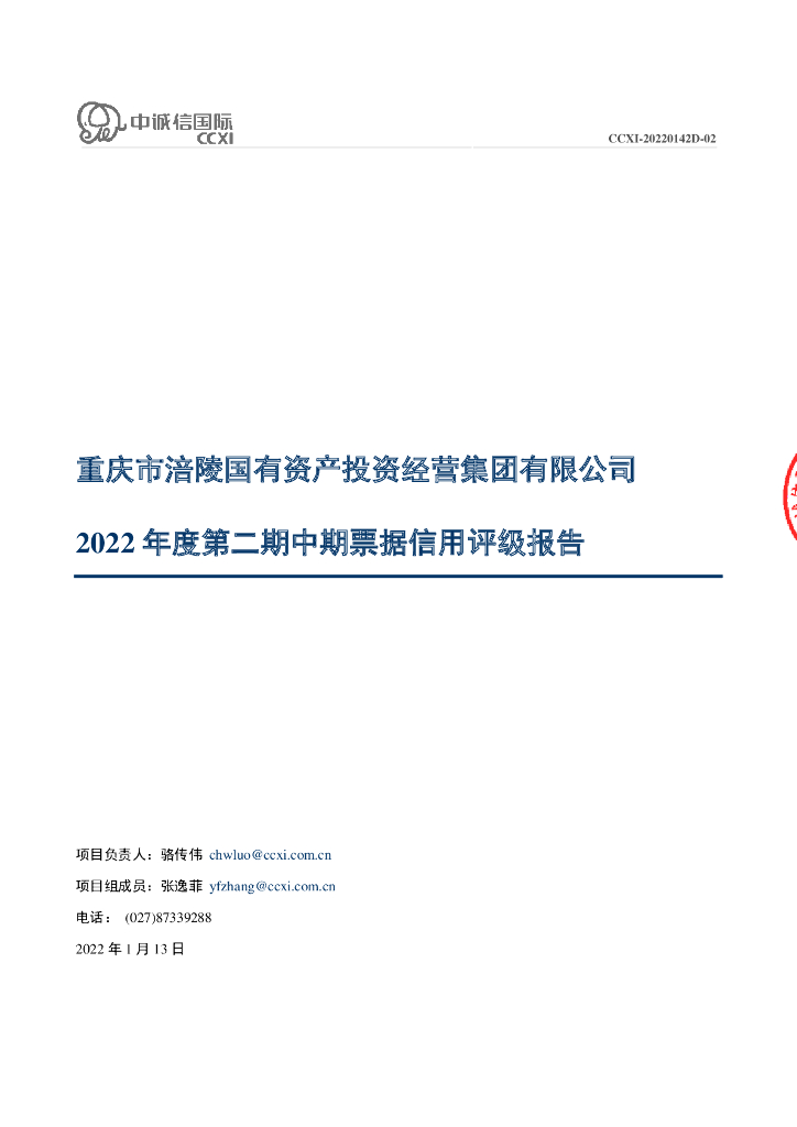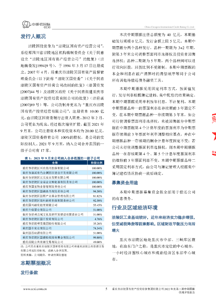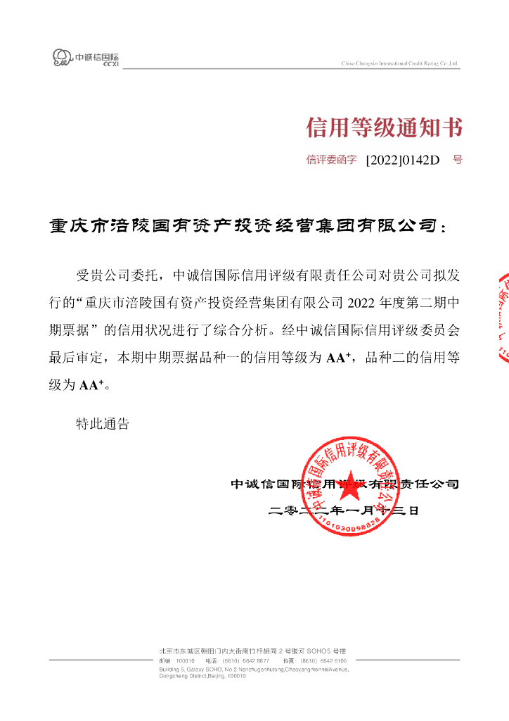 中诚信:重庆市涪陵国有资产投资经营集团有限公司2022年度第二期中期票据信用评级报告.pdf
