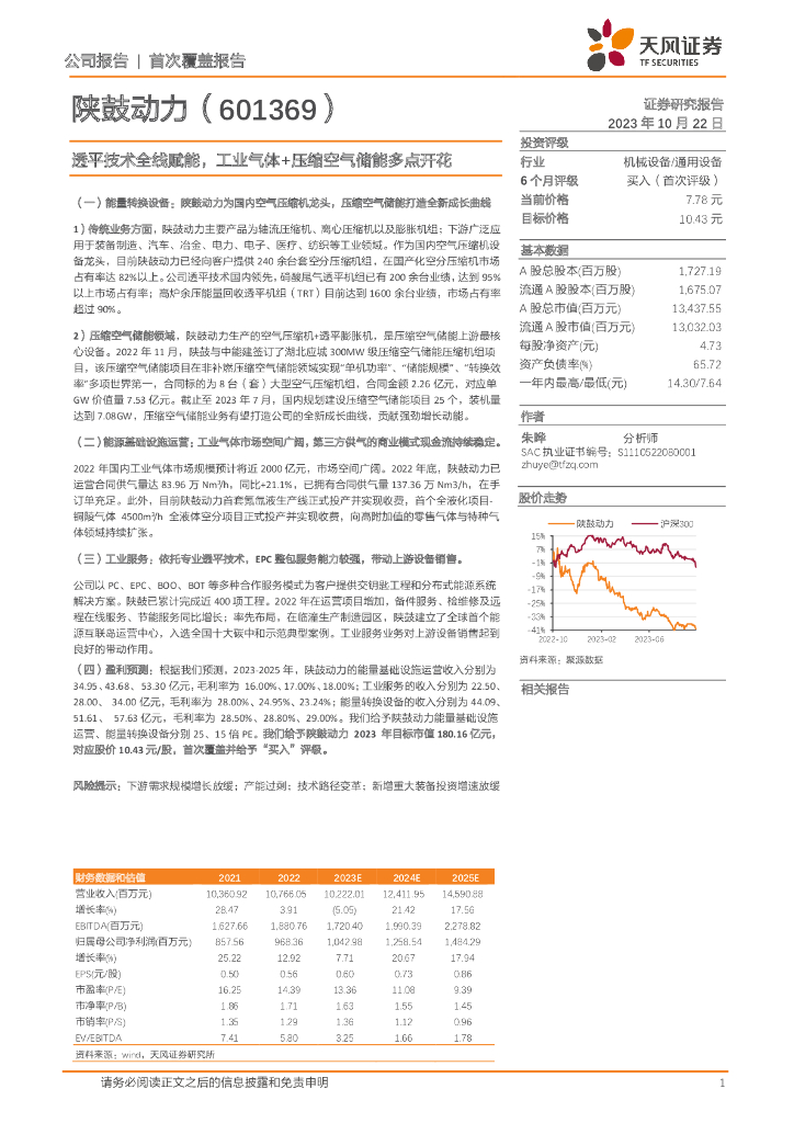 天风证券:陕鼓动力(601369)-透平技术全线赋能,工业气体+压缩空气储能多点开花.pdf