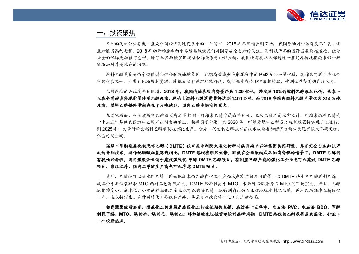 信达证券:化工行业2019年中期投资策略:煤制乙醇或将成为化工行业下一投资热点.pdf