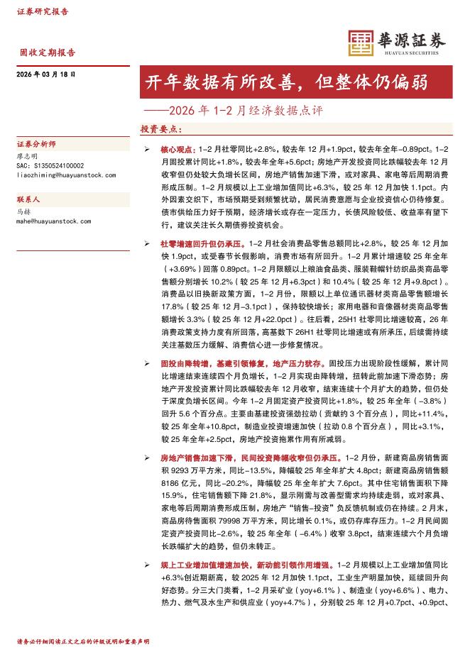 华源证券:2026年1-2月经济数据点评:开年数据有所改善,但整体仍偏弱-260318.pdf