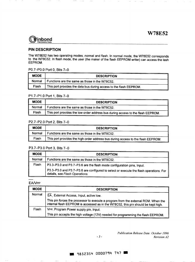 Winbond W78E52 8-BIT OTP MICROCONTROLLER 数据手册.pdf