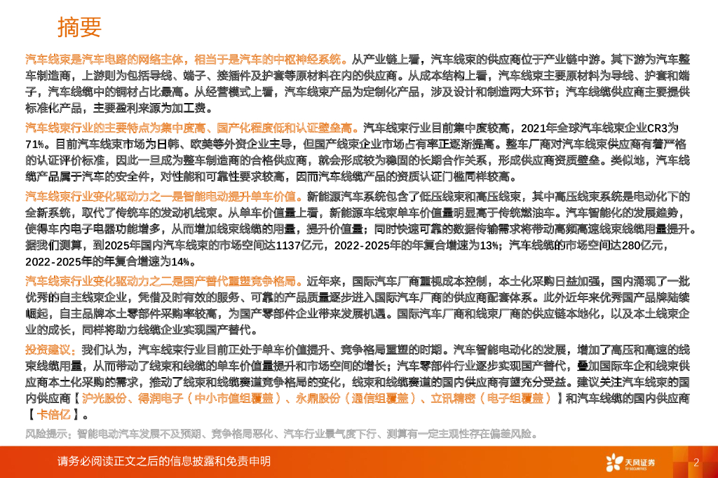 天风证券:汽车线束专题:单车价值提升,竞争格局重塑.pdf