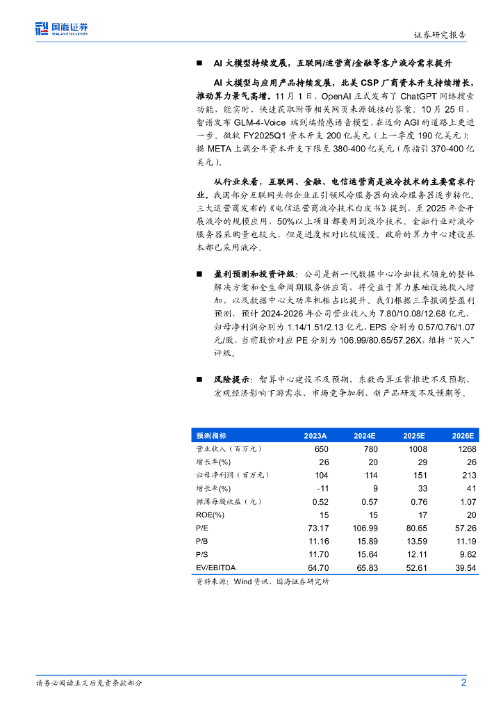 国海证券:曙光数创(872808)-2024年三季报点评:Q3营收同比增长245%,互联网/运营商/金融液冷需求提升.pdf