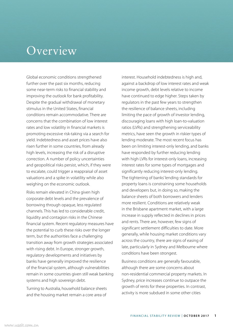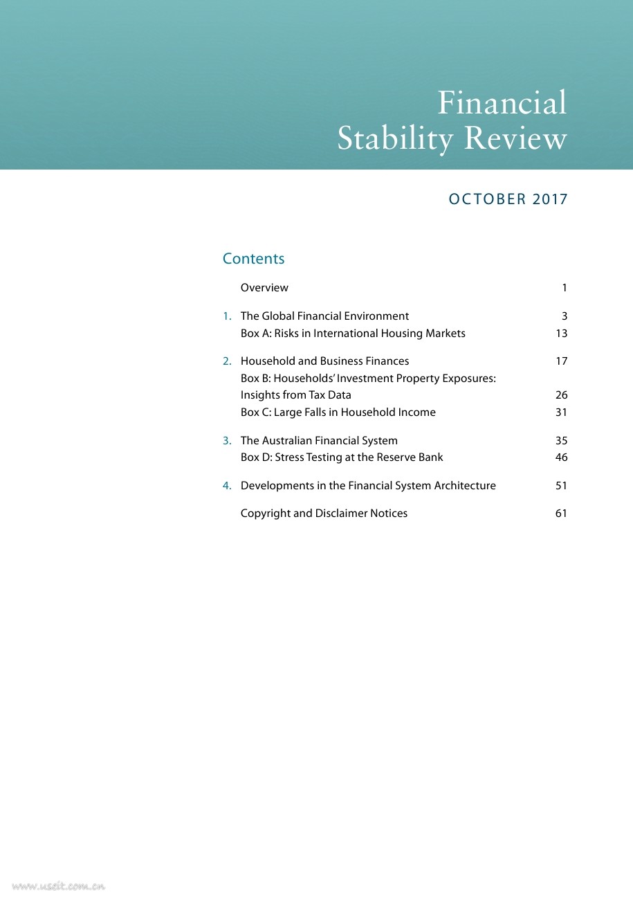 澳洲储备银行:2017澳大利亚金融稳定评估报告(英文版).pdf