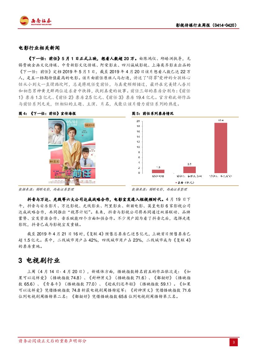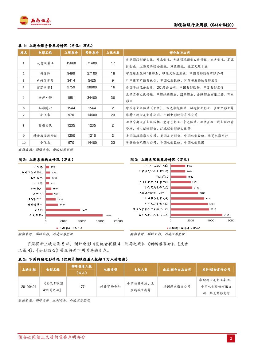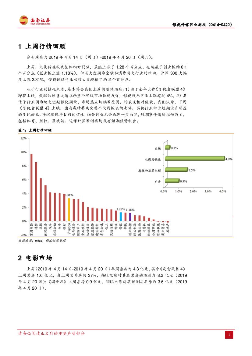 西南证券:影视传媒行业周报:宣发进入短视频时代,《复联4》预售票房近5亿.pdf