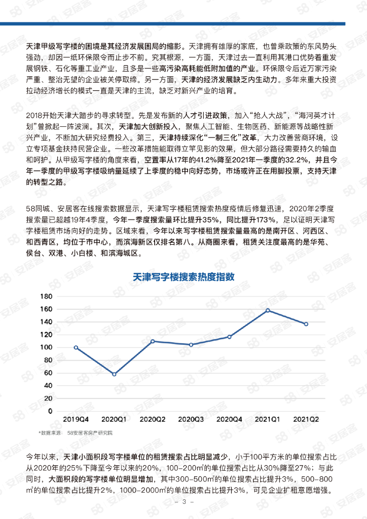 58安居客:经济破局重生甲级写字楼市场走势向好——天津写字楼市场观察报告.pdf