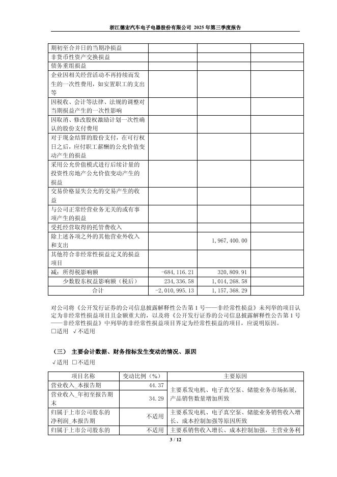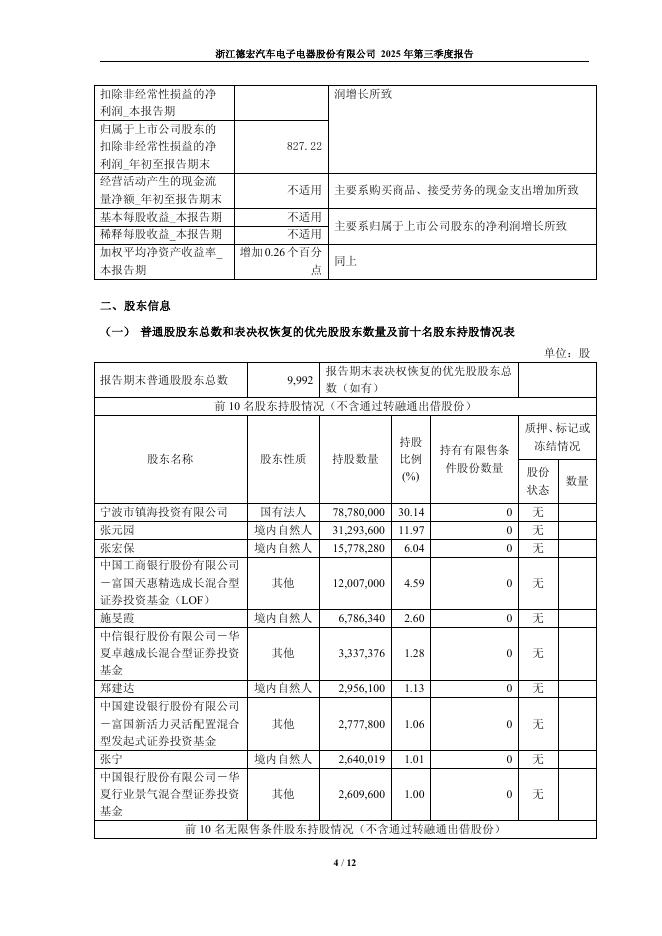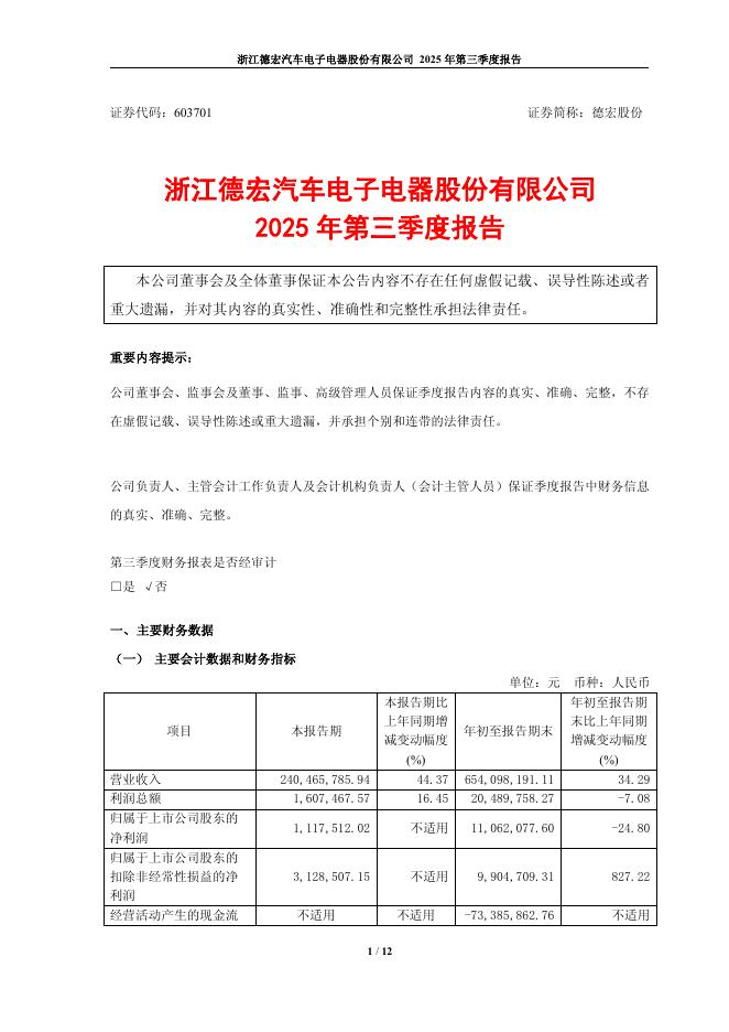603701-德宏股份:浙江德宏汽车电子电器股份有限公司2025年第三季度报告.pdf