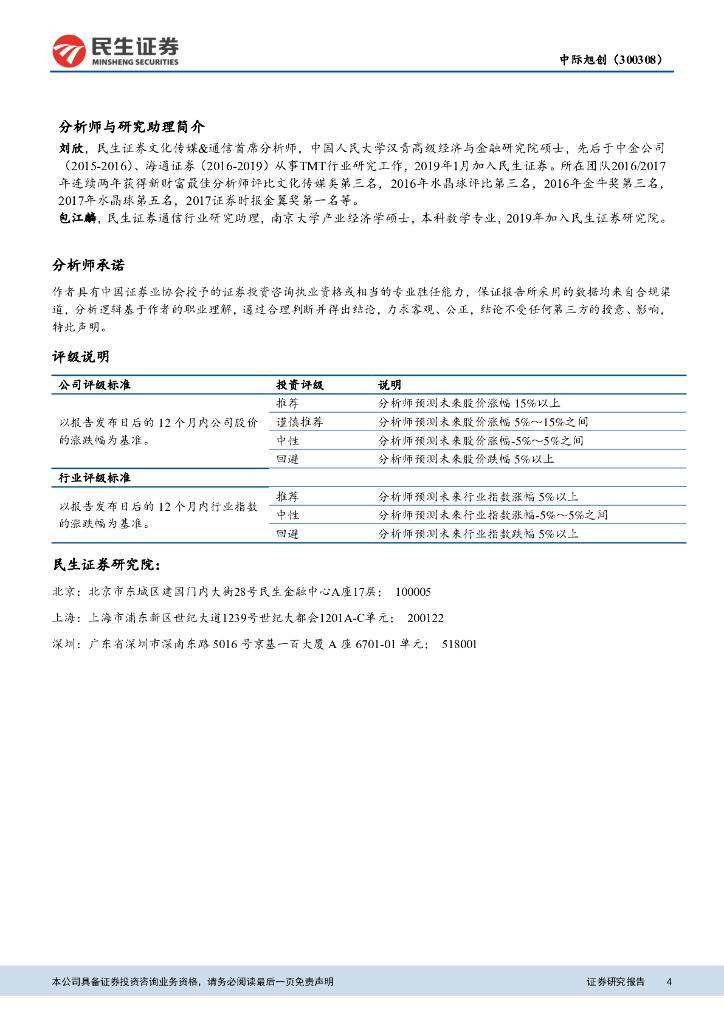 民生证券:中际旭创2019年报及2020Q1季报点评:19Q4-20Q1业绩止跌回升迎来拐点,看好光模块行业景气度,旭创龙头起航时.pdf