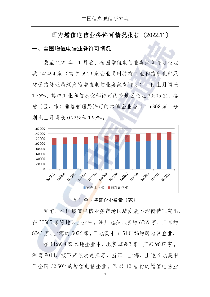 中国信通院:国内增值电信业务许可情况报告(2022.11).pdf