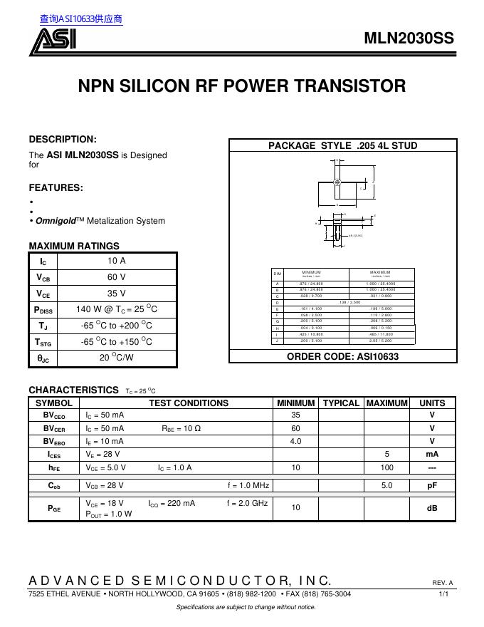 NATIONAL SEMICONDUCTOR - May 27, 2008 DS15BA101 1.5 Gbps Differential Buffer with Adjustable Output Voltage General 说明书
