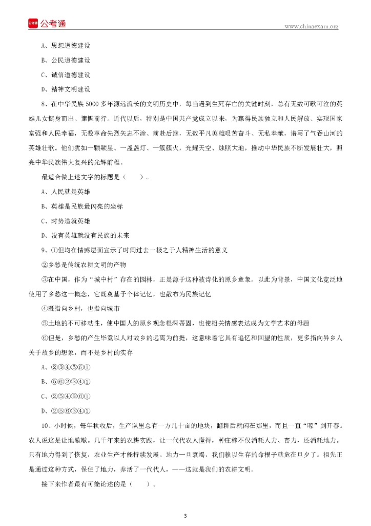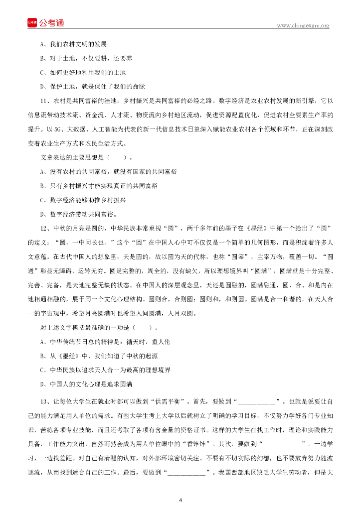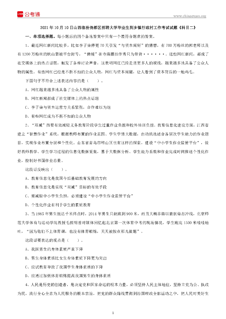2021年10月10日山西临汾尧都区招聘大学毕业生到乡镇行政村工作考试试题《科目二 ...pdf