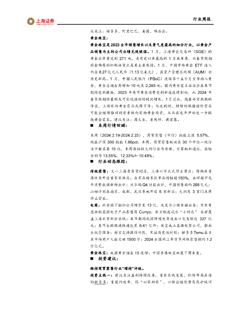 上海证券:商贸零售行业周报:沃尔玛中国净销售额录得两位数增长,山姆业态及电商业务持续表现强劲.pdf