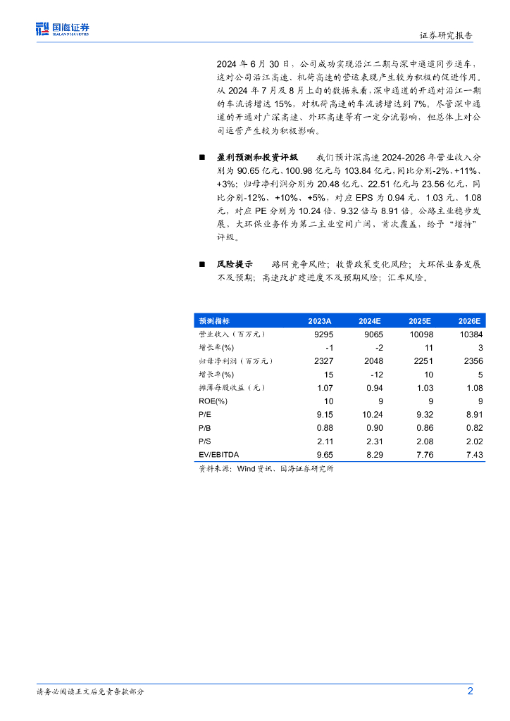 国海证券:深高速(600548)-2024年半年报点评:大环保减值冲击业绩,深中通道开通带来增量.pdf